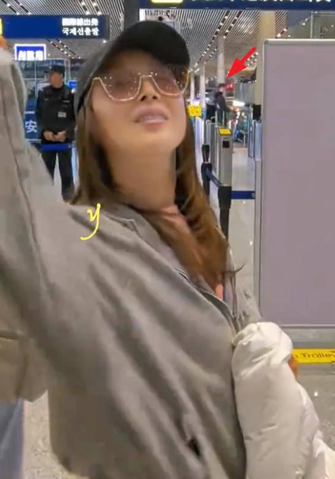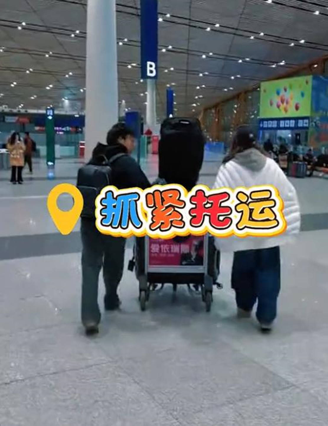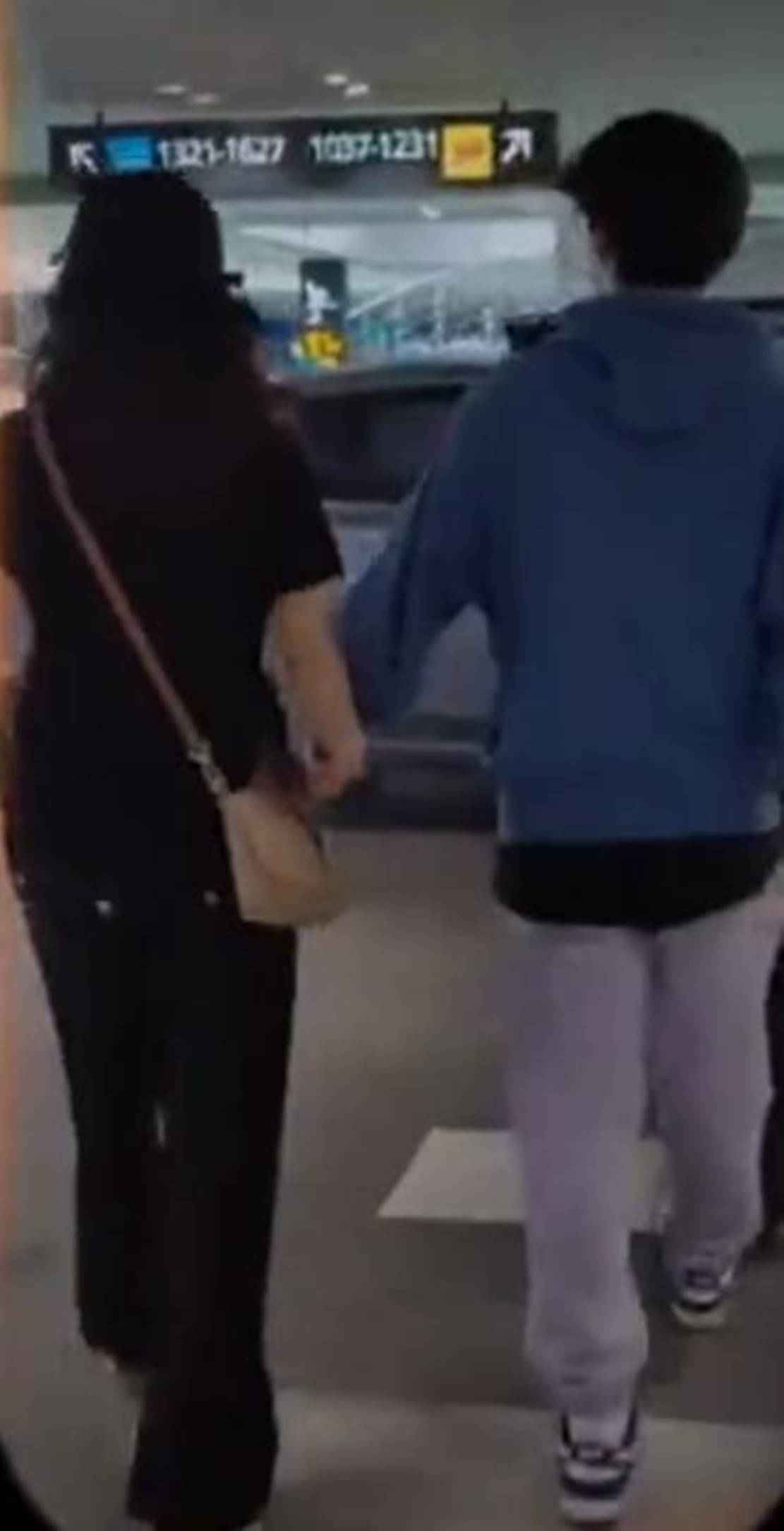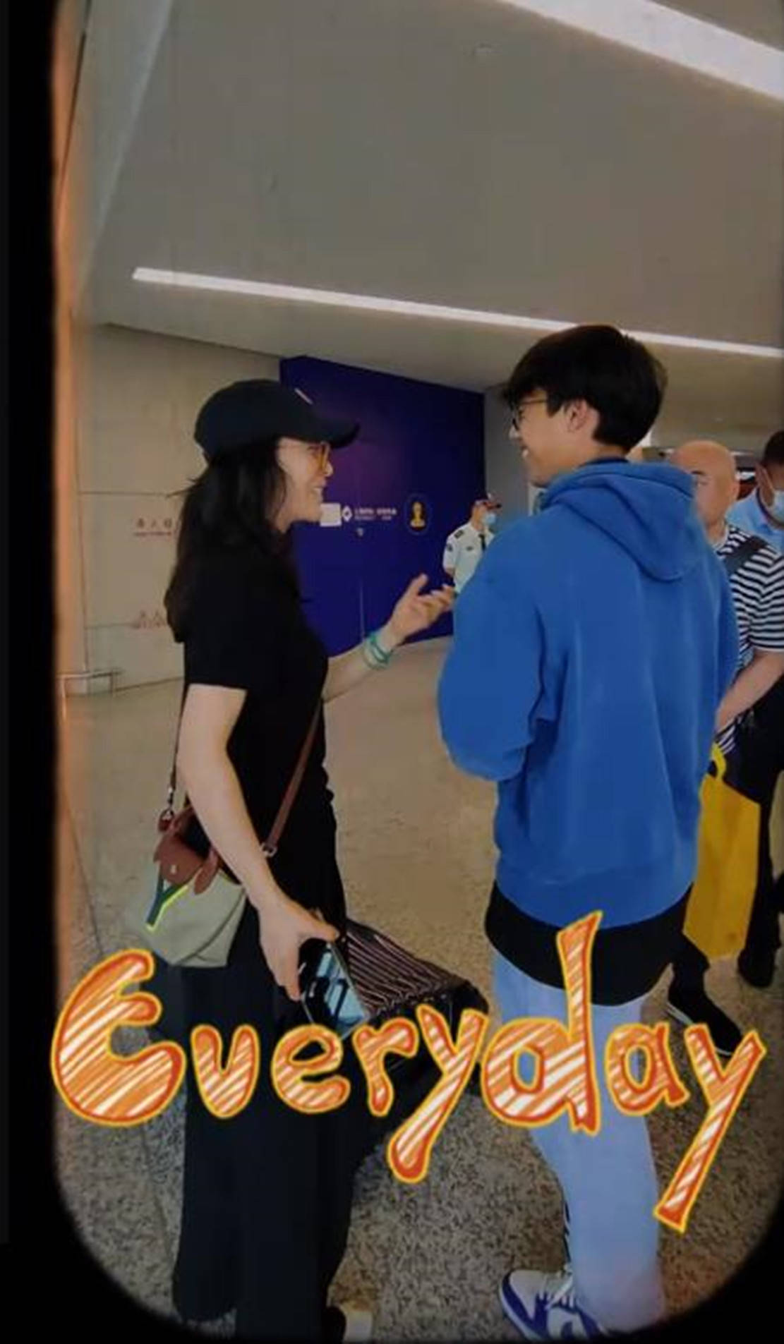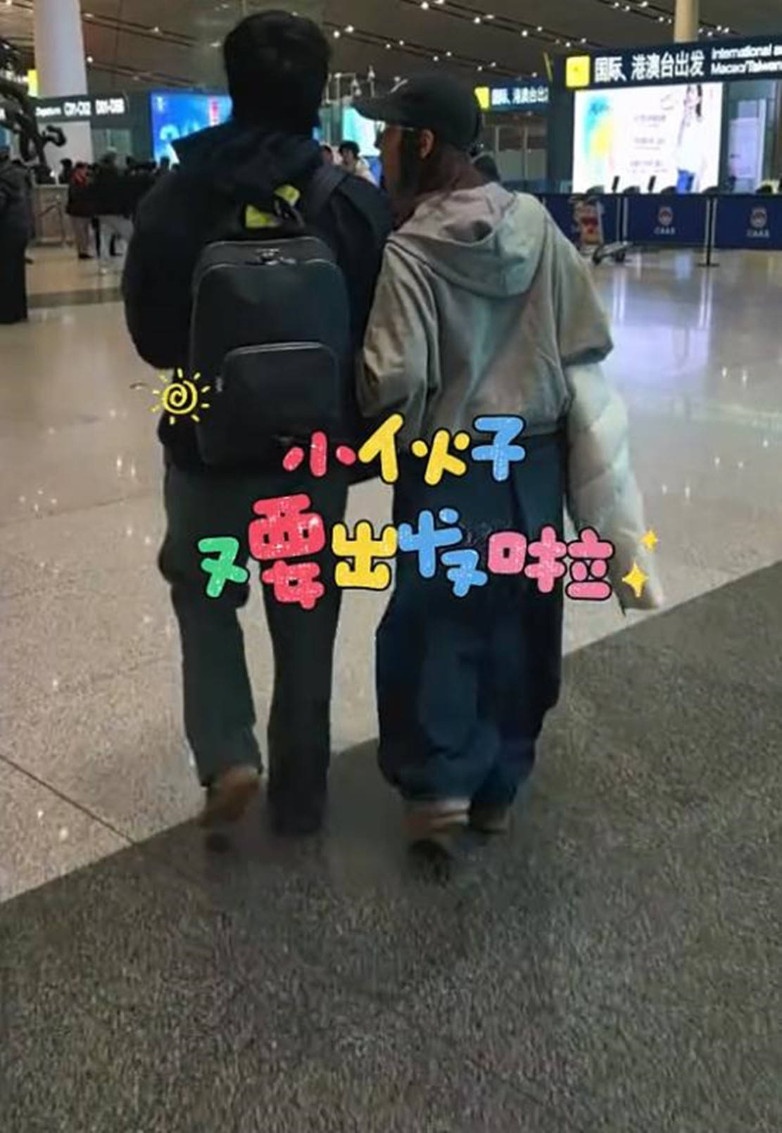 随后,和儿子到达机场的孙悦,母子两个推着比他们还要高的行李箱,边走边聊。而在办好行李托运后,忙得热出一身汗的孙悦脱掉外套,另一只手则是紧紧挽着儿子手臂,看俩人这背影不像是母子更像是姐弟。