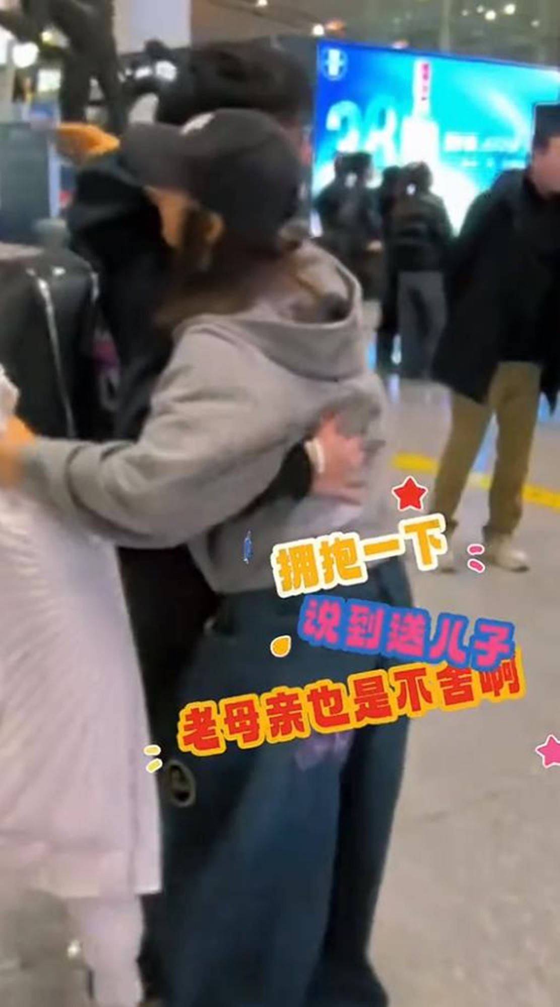 虽说Andy出国上学已经有几年,不过,每次分别,孙悦依旧很是不舍。儿子登机前,不舍分别的孙悦将儿子抱在怀中,一只手轻拍着他的后背叮嘱着什么。