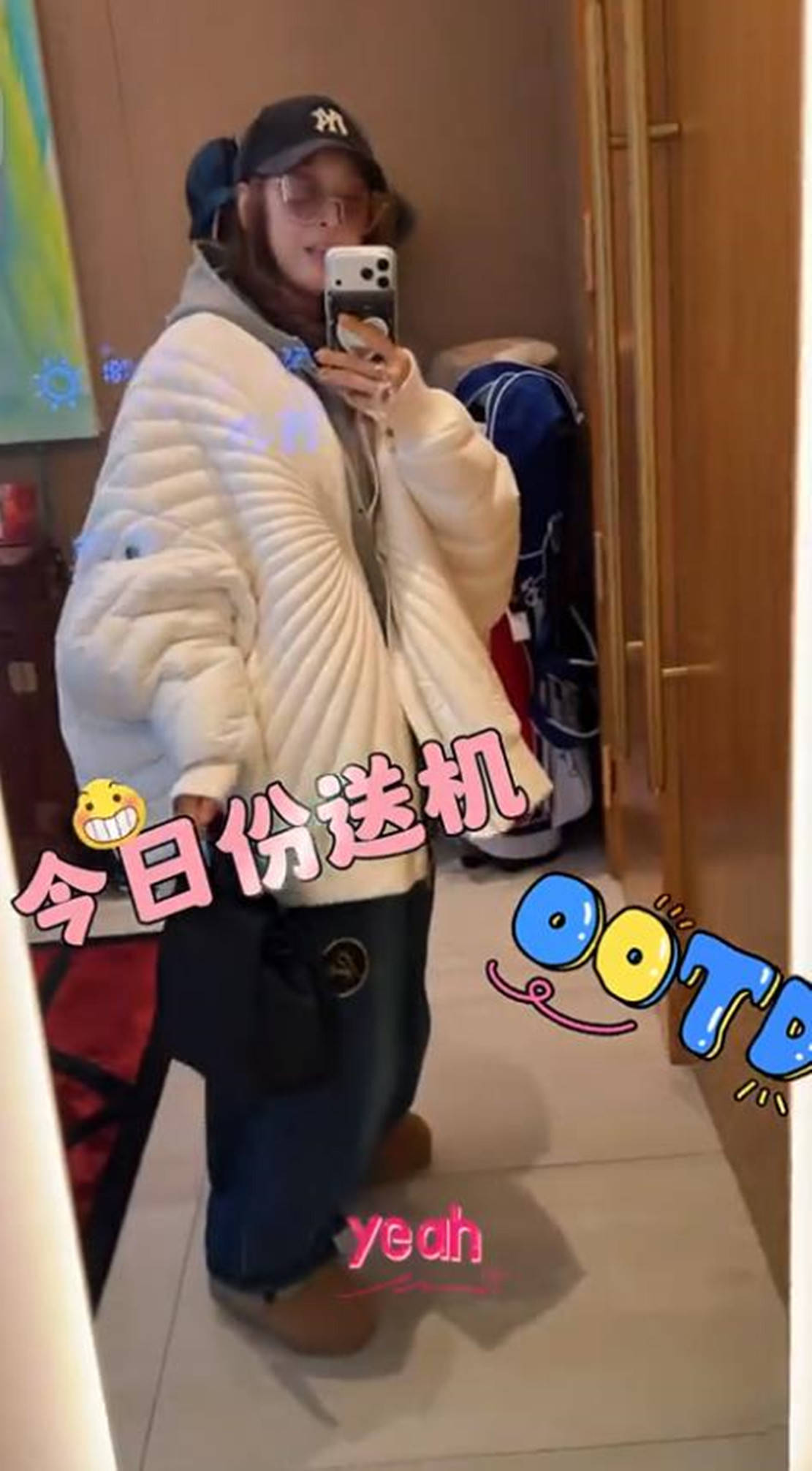 北京天气还是很冷的,所以,出门前的孙悦外面套了一件白色羽绒服,保暖又时尚。